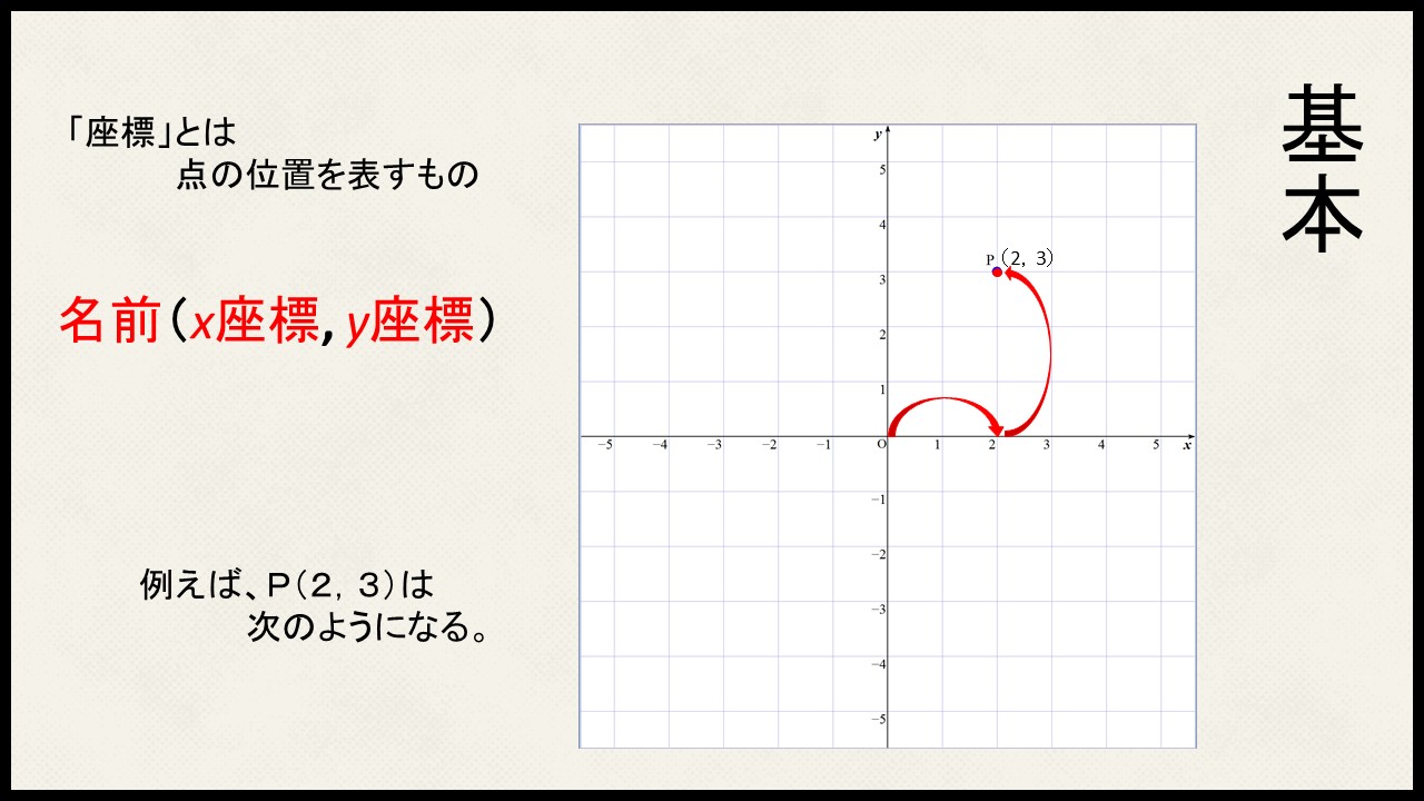 座標とは点の位置を表すものなのでしっかり覚えておきましょう!